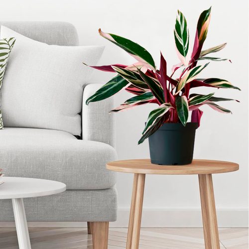 It is a common houseplant in temperate climates for its striking variegated leaves and purple underside of its leaves. It can grow outside in a humid tropical climate, but needs light shade in the afternoon and must be protected from high winds. The soil should be kept moist at all times, but never waterlogged as they are susceptible to root rot. The distinctive variegation is lost when the plant is under full shade as the leaves become solid green.